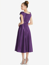 【NEW】【STYLE: TH091】キャップ スリーブ フェイク ラップ サテン MIDI ドレス ポケット付き【COLOR: Majestic】【SIZE: 00-30W】