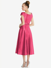 このマットサテンミディドレスの壮大な光沢の中から照らされるように見えます。生意気な余剰の胴着と軽薄なキャップスリーブを備えたこのドレスには、ダンスフロア対応のフルサークルスカートが備わっています。