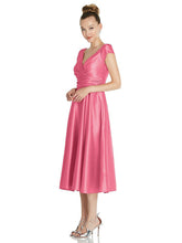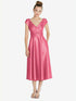 【NEW】【STYLE: TH091】キャップ スリーブ フェイク ラップ サテン MIDI ドレス ポケット付き【COLOR: Punch】【SIZE: 00-30W】