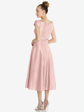このマットサテンミディドレスの壮大な光沢の中から照らされるように見えます。生意気な余剰の胴着と軽薄なキャップスリーブを備えたこのドレスには、ダンスフロア対応のフルサークルスカートが備わっています。