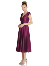 【NEW】【STYLE: TH091】キャップ スリーブ フェイク ラップ サテン MIDI ドレス ポケット付き【COLOR: Ruby】【SIZE: 00-30W】