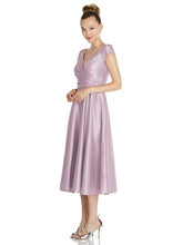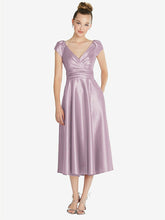 【NEW】【STYLE: TH091】キャップ スリーブ フェイク ラップ サテン MIDI ドレス ポケット付き【COLOR: Suede Rose】【SIZE: 00-30W】