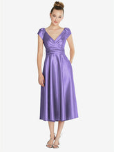 【NEW】【STYLE: TH091】キャップ スリーブ フェイク ラップ サテン MIDI ドレス ポケット付き【COLOR: Tahiti】【SIZE: 00-30W】