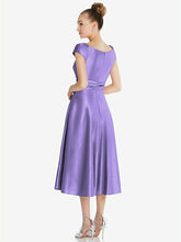 このマットサテンミディドレスの壮大な光沢の中から照らされるように見えます。生意気な余剰の胴着と軽薄なキャップスリーブを備えたこのドレスには、ダンスフロア対応のフルサークルスカートが備わっています。