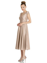 【NEW】【STYLE: TH091】キャップ スリーブ フェイク ラップ サテン MIDI ドレス ポケット付き【COLOR: Topaz】【SIZE: 00-30W】