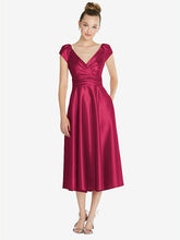 【NEW】【STYLE: TH091】キャップ スリーブ フェイク ラップ サテン MIDI ドレス ポケット付き【COLOR: Valentine】【SIZE: 00-30W】