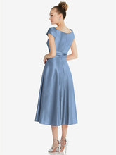 【NEW】【STYLE: TH091】キャップ スリーブ フェイク ラップ サテン MIDI ドレス ポケット付き【COLOR: Windsor Blue】【SIZE: 00-30W】