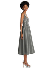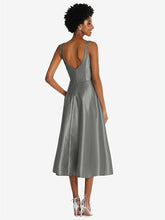 【NEW】【STYLE: TH092】正方形 首 フル スカート サテン MIDI ドレス ポケット付き【COLOR: Charcoal Gray】【SIZE: 00-30W】