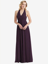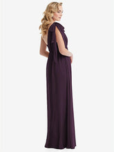 このエレガントでラックスシフォンエンパイアウエストドレスでロマンスを放射します。 3つのルックスを1つ備えたこのゴージャスなガウンは、弓の肩、片方の肩、またはホルターに変換するサッシータイストラップを特徴としています。 Ackowy Shirred Skirtは、この見事なフォーマルドレスの夢のような外観を完成させます。