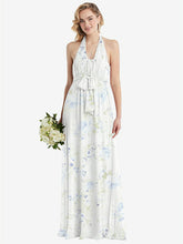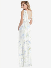 【NEW】【STYLE: TH095】エンパイア ウエスト シャイレッド スカート コンバーチブル サッシ ネクタイ マキシ ドレス【COLOR: Bleu Garden】【SIZE: 00-30W】