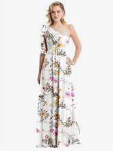 このエレガントでラックスシフォンエンパイアウエストドレスでロマンスを放射します。 3つのルックスを1つ備えたこのゴージャスなガウンは、弓の肩、片方の肩、またはホルターに変換するサッシータイストラップを特徴としています。 Ackowy Shirred Skirtは、この見事なフォーマルドレスの夢のような外観を完成させます。