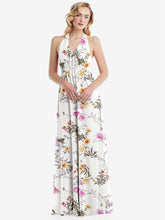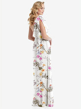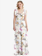 【NEW】【STYLE: TH095】エンパイア ウエスト シャイレッド スカート コンバーチブル サッシ ネクタイ マキシ ドレス【COLOR: Butterfly Botanica Ivory】【SIZE: 00-30W】