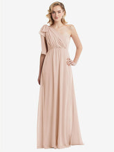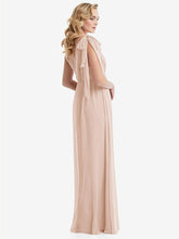 このエレガントでラックスシフォンエンパイアウエストドレスでロマンスを放射します。 3つのルックスを1つ備えたこのゴージャスなガウンは、弓の肩、片方の肩、またはホルターに変換するサッシータイストラップを特徴としています。 Ackowy Shirred Skirtは、この見事なフォーマルドレスの夢のような外観を完成させます。