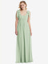 【NEW】【STYLE: TH095】エンパイア ウエスト シャイレッド スカート コンバーチブル サッシ ネクタイ マキシ ドレス【COLOR: Celadon】【SIZE: 00-30W】