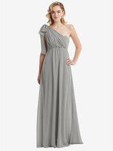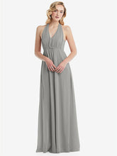 このエレガントでラックスシフォンエンパイアウエストドレスでロマンスを放射します。 3つのルックスを1つ備えたこのゴージャスなガウンは、弓の肩、片方の肩、またはホルターに変換するサッシータイストラップを特徴としています。 Ackowy Shirred Skirtは、この見事なフォーマルドレスの夢のような外観を完成させます。