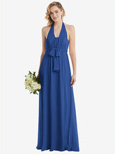 【NEW】【STYLE: TH095】エンパイア ウエスト シャイレッド スカート コンバーチブル サッシ ネクタイ マキシ ドレス【COLOR: Classic Blue】【SIZE: 00-30W】