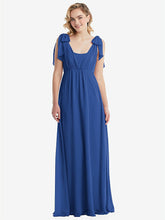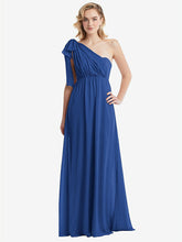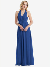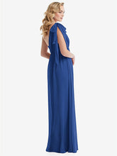 このエレガントでラックスシフォンエンパイアウエストドレスでロマンスを放射します。 3つのルックスを1つ備えたこのゴージャスなガウンは、弓の肩、片方の肩、またはホルターに変換するサッシータイストラップを特徴としています。 Ackowy Shirred Skirtは、この見事なフォーマルドレスの夢のような外観を完成させます。