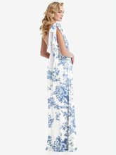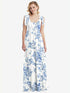 【NEW】【STYLE: TH095】エンパイア ウエスト シャイレッド スカート コンバーチブル サッシ ネクタイ マキシ ドレス【COLOR: Cottage Rose Dusk Blue】【SIZE: 00-30W】