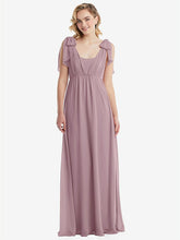 このエレガントでラックスシフォンエンパイアウエストドレスでロマンスを放射します。 3つのルックスを1つ備えたこのゴージャスなガウンは、弓の肩、片方の肩、またはホルターに変換するサッシータイストラップを特徴としています。 Ackowy Shirred Skirtは、この見事なフォーマルドレスの夢のような外観を完成させます。