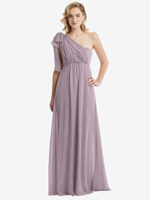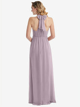 このエレガントでラックスシフォンエンパイアウエストドレスでロマンスを放射します。 3つのルックスを1つ備えたこのゴージャスなガウンは、弓の肩、片方の肩、またはホルターに変換するサッシータイストラップを特徴としています。 Ackowy Shirred Skirtは、この見事なフォーマルドレスの夢のような外観を完成させます。
