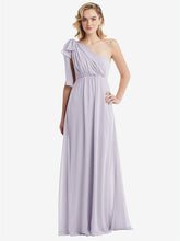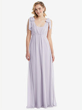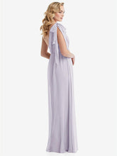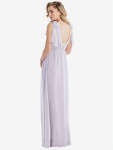 このエレガントでラックスシフォンエンパイアウエストドレスでロマンスを放射します。 3つのルックスを1つ備えたこのゴージャスなガウンは、弓の肩、片方の肩、またはホルターに変換するサッシータイストラップを特徴としています。 Ackowy Shirred Skirtは、この見事なフォーマルドレスの夢のような外観を完成させます。