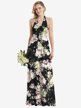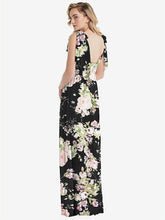 【NEW】【STYLE: TH095】エンパイア ウエスト シャイレッド スカート コンバーチブル サッシ ネクタイ マキシ ドレス【COLOR: Noir Garden】【SIZE: 00-30W】