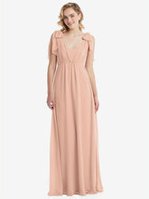 【NEW】【STYLE: TH095】エンパイア ウエスト シャイレッド スカート コンバーチブル サッシ ネクタイ マキシ ドレス【COLOR: Pale Peach】【SIZE: 00-30W】