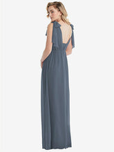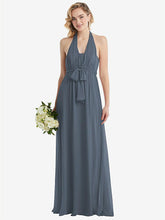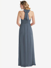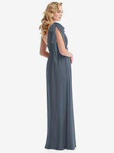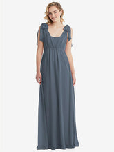 このエレガントでラックスシフォンエンパイアウエストドレスでロマンスを放射します。 3つのルックスを1つ備えたこのゴージャスなガウンは、弓の肩、片方の肩、またはホルターに変換するサッシータイストラップを特徴としています。 Ackowy Shirred Skirtは、この見事なフォーマルドレスの夢のような外観を完成させます。