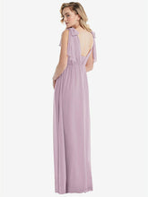 このエレガントでラックスシフォンエンパイアウエストドレスでロマンスを放射します。 3つのルックスを1つ備えたこのゴージャスなガウンは、弓の肩、片方の肩、またはホルターに変換するサッシータイストラップを特徴としています。 Ackowy Shirred Skirtは、この見事なフォーマルドレスの夢のような外観を完成させます。