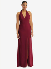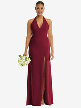 【NEW】【STYLE: TH110】プランジ 首 ホルター バックレス トランペット ガウン 前面 スリット【COLOR: Burgundy】【SIZE: 00-30W】