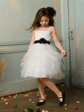 - 白いチュールに黒のサッシュリボンがデザインされたフラワーガールドレス