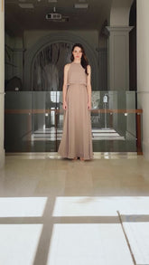 ノースリーブデザインのシンプルなロングドレス