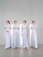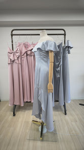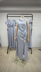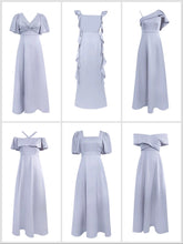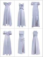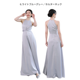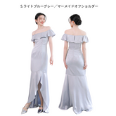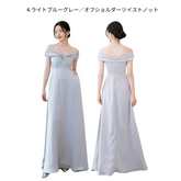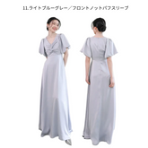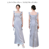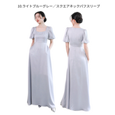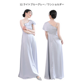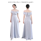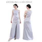 12類のデザインより選べる、ライトブルーグレーカラーのサテンロングドレス