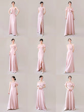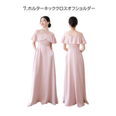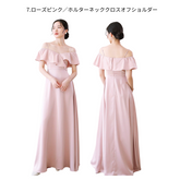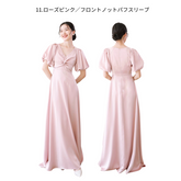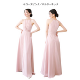 12類のデザインより選べる、ローズピンクカラーのサテンロングドレス